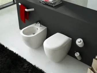 Унитазы с биде имеют свои особенности, отличающие их от обычных моделей. Обычно они обладают более вытянутыми формами, так как на их ободе установлены промывочные форсунки. Бачок таких унитазов также может быть увеличенного объема. Чаша унитаза типа биде, как правило, имеет длину 700 мм и ширину 410 мм. Настенная конструкция отличается размерами 485×365 мм.
